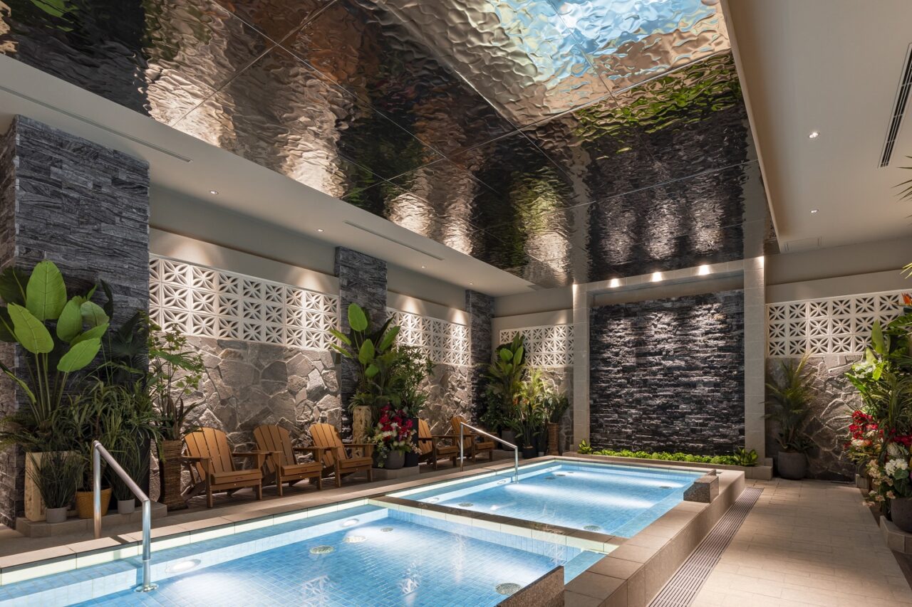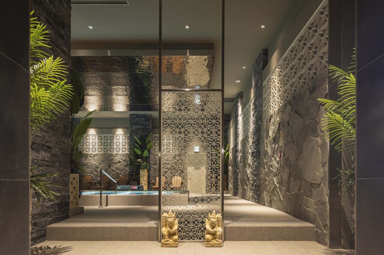 エリアごとに各国テーマ温浴がある施設に、新たに、モダンバリエリア・ドイツエリア・茶の湯(モダン日本)エリアの3エリアを設ける提案が採用された。